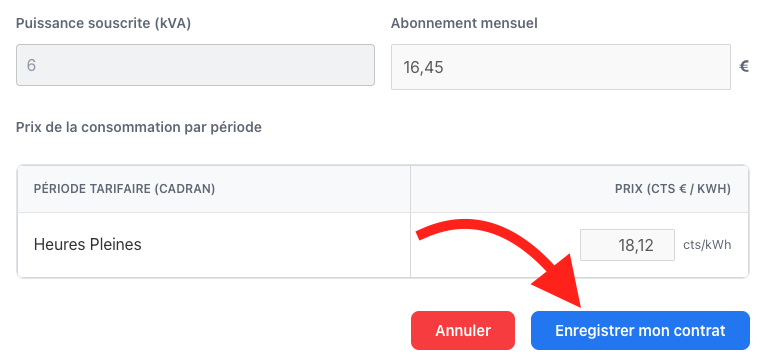 9) Une fois le nom et les prix modifiés, cliquez sur « Enregistrer mon contrat »