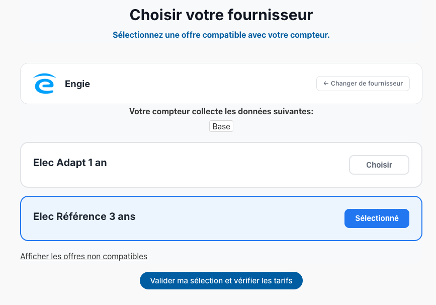 4) Choisissez une offre qui ressemble à la vôtre, par exemple « Elec Référence 3 ans »