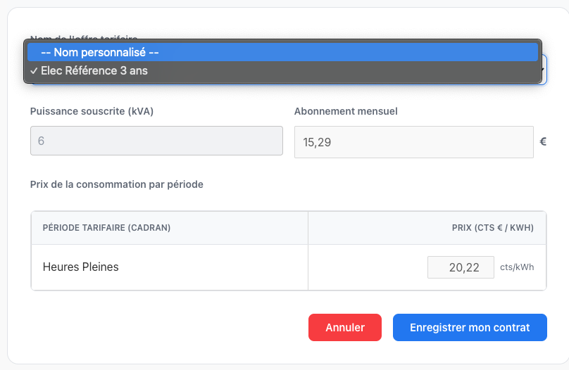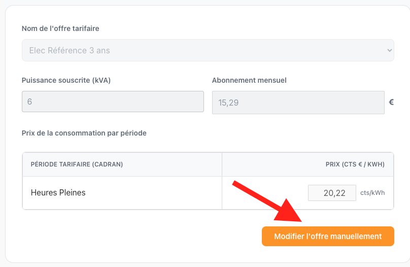 Ajouter votre offre d’électricité manuellement dans le comparateur
