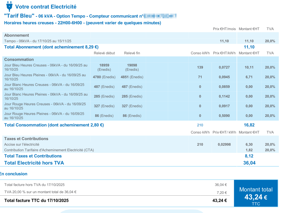 Une facture d’électricité contient déjà toutes les informations nécessaires :